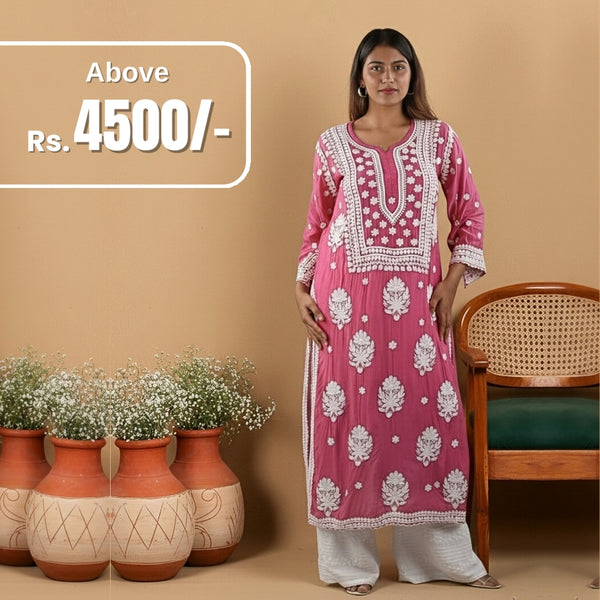 Rose Pink Radiance Premium Muslin Handwork Chikankari Kurti