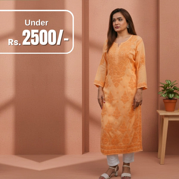 Peach Heavy Rayon Kurti with White Chikankari Handwork