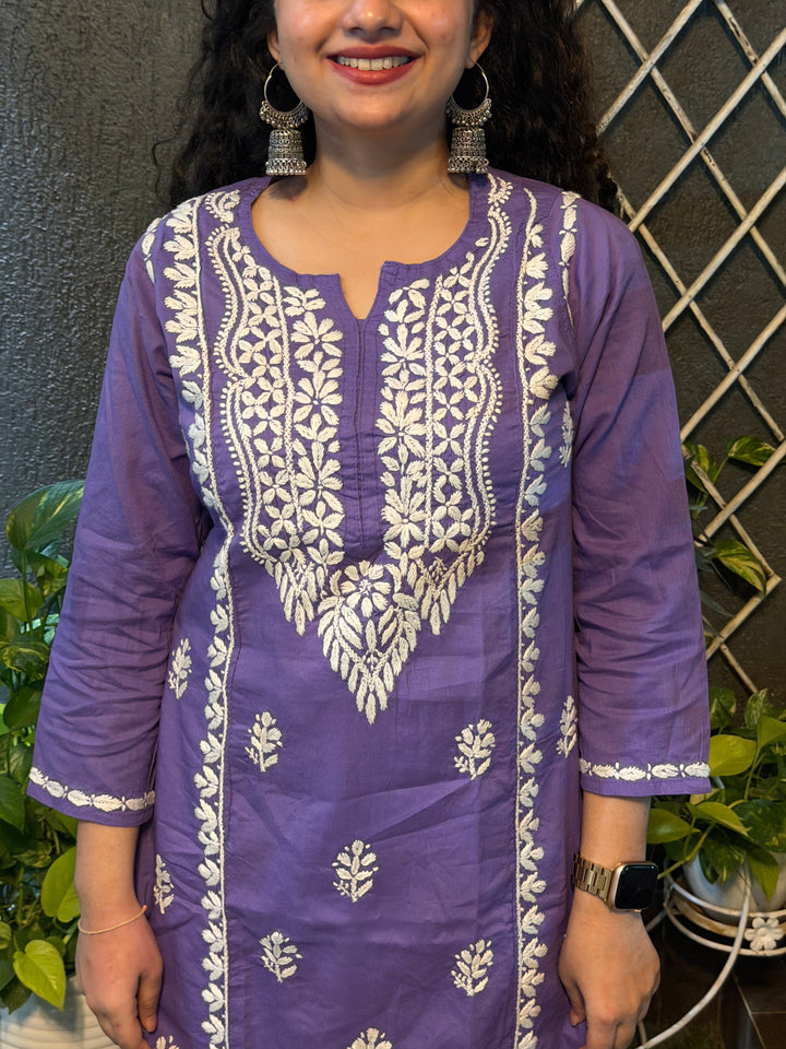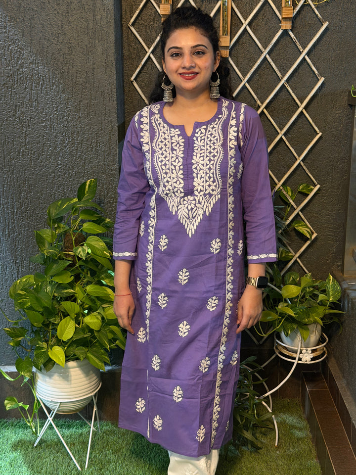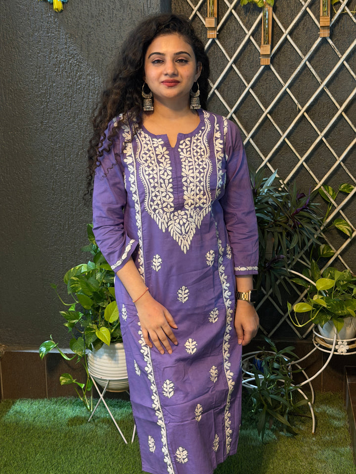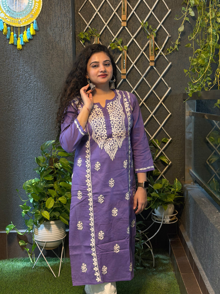 Blooming with beauty and comfort! Our collection of chikankari kurtas feature stunning color and intricate embroidery on soft, breathable basic cotton. Perfect for any season, these non-transparent kurtas are perfect for adding a touch of elegance to your summer style. (Bottom wear is separate)