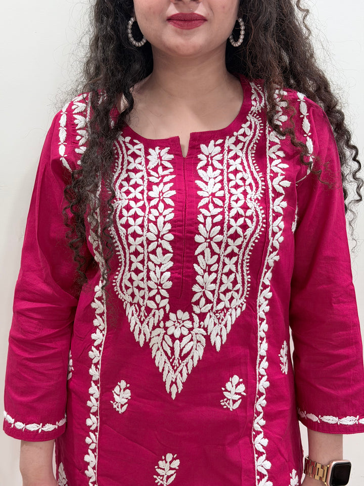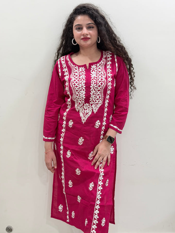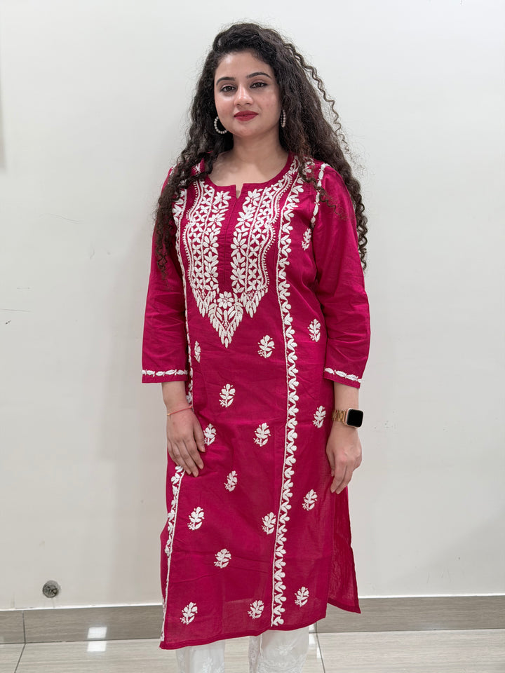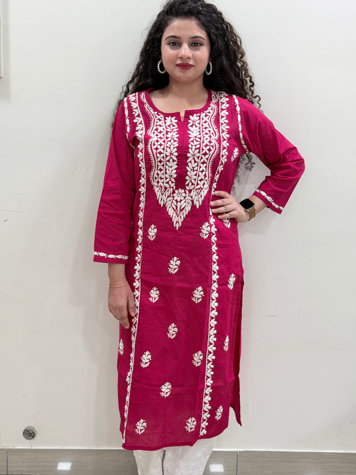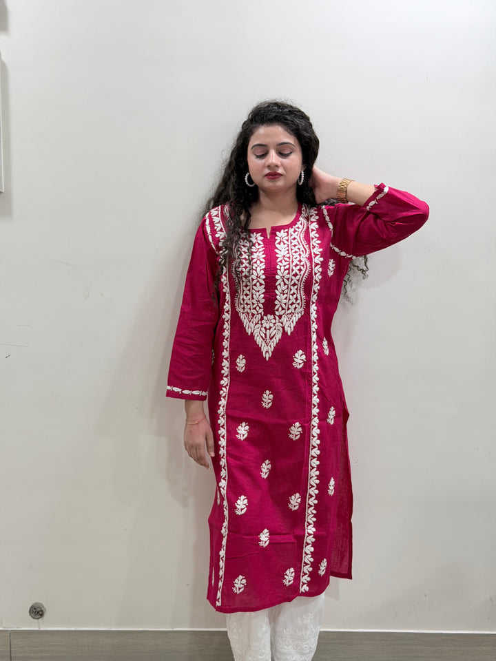 Blooming with beauty and comfort! Our collection of chikankari kurtas feature stunning color and intricate embroidery on soft, breathable basic cotton. Perfect for any season, these non-transparent kurtas are perfect for adding a touch of elegance to your summer style. (Bottom wear is separate)