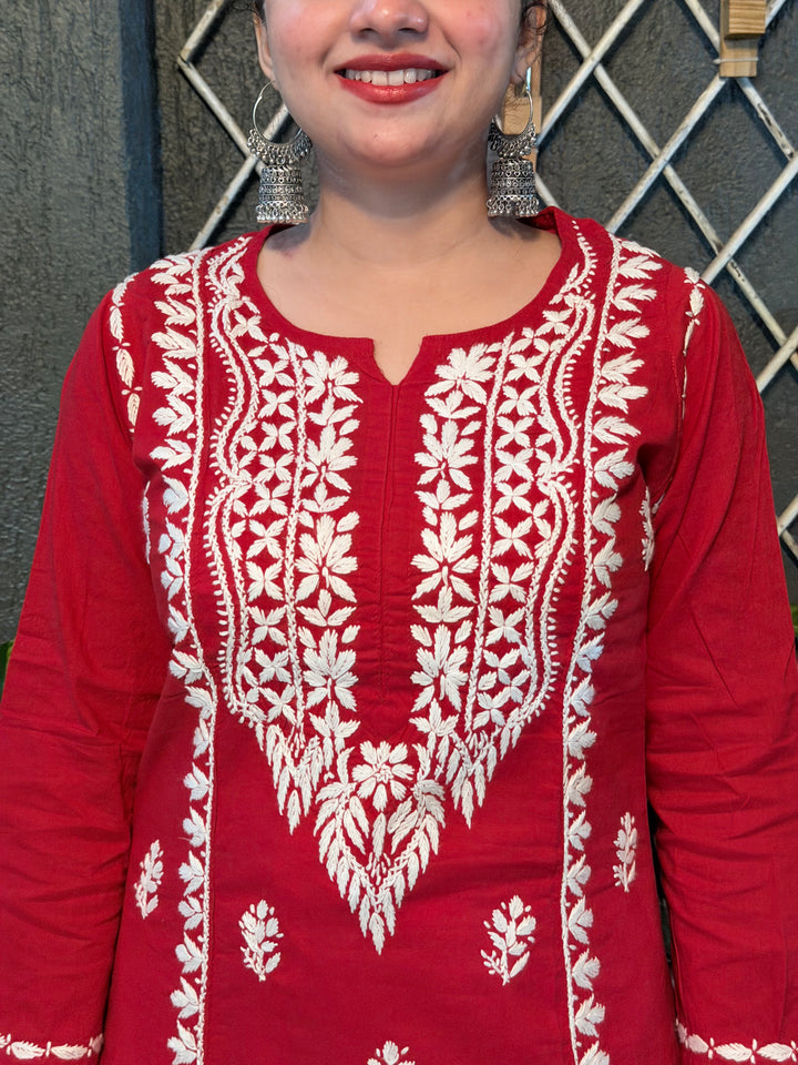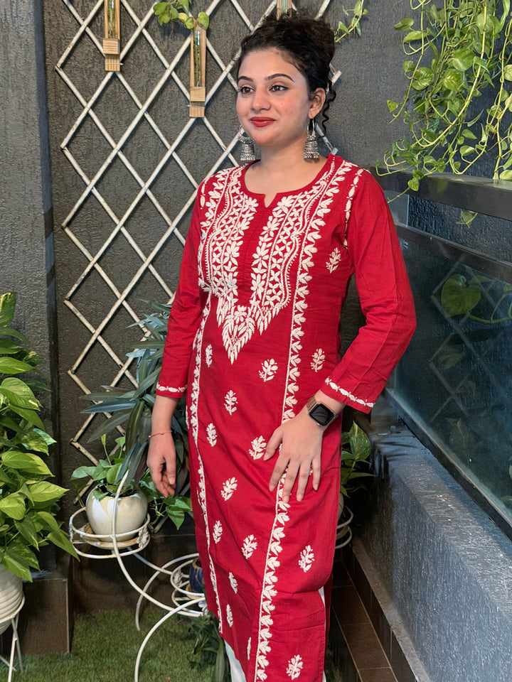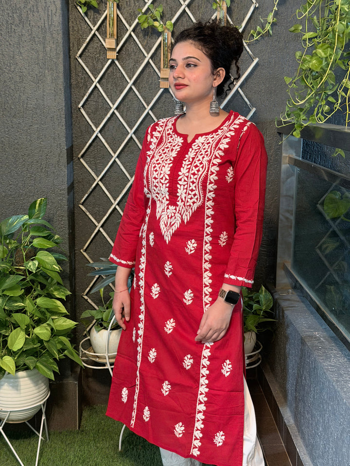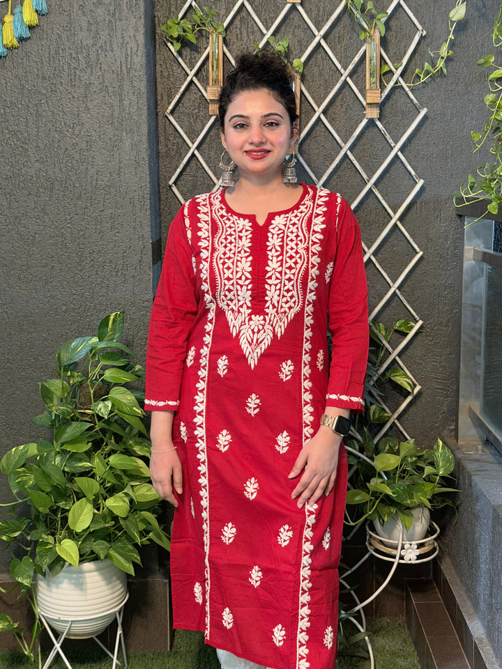 Blooming with beauty and comfort! Our collection of chikankari kurtas feature stunning color and intricate embroidery on soft, breathable basic cotton. Perfect for any season, these non-transparent kurtas are perfect for adding a touch of elegance to your summer style. (Bottom wear is separate)