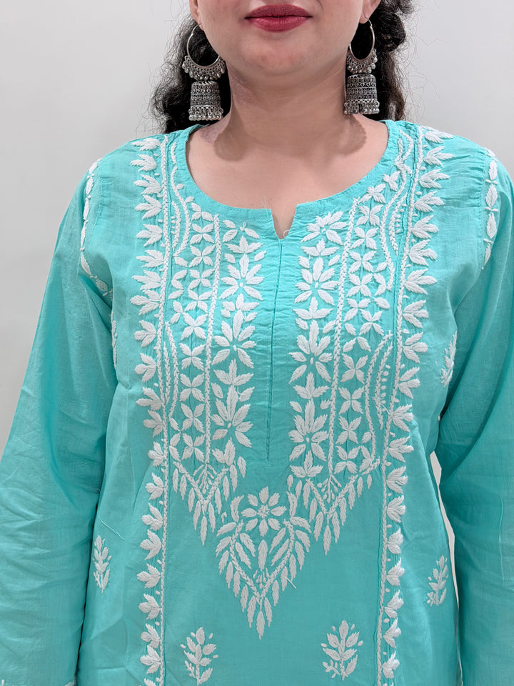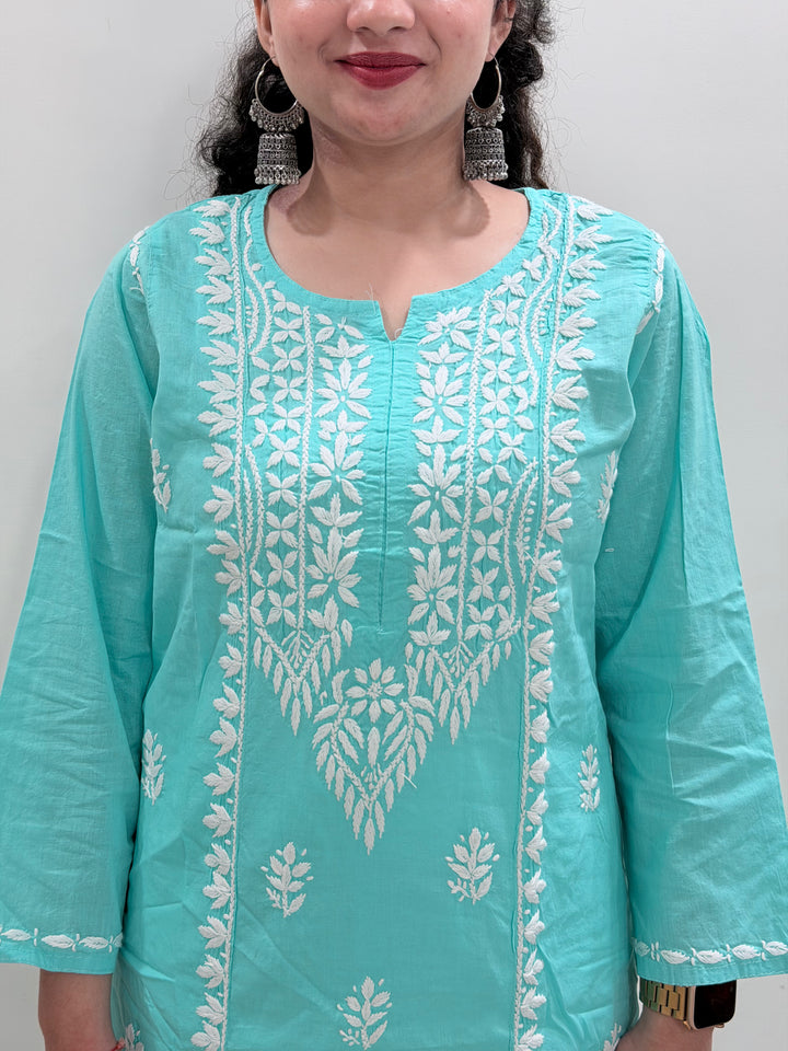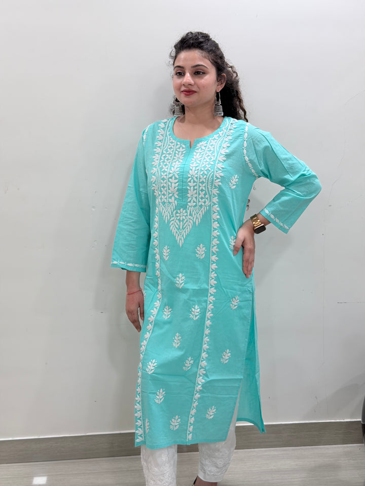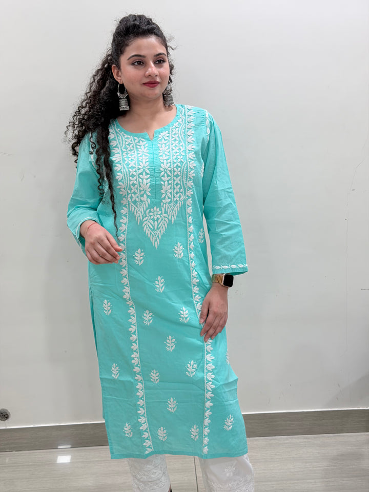 Blooming with beauty and comfort! Our collection of chikankari kurtas feature stunning color and intricate embroidery on soft, breathable basic cotton. Perfect for any season, these non-transparent kurtas are perfect for adding a touch of elegance to your summer style. (Bottom wear is separate)