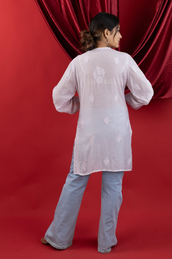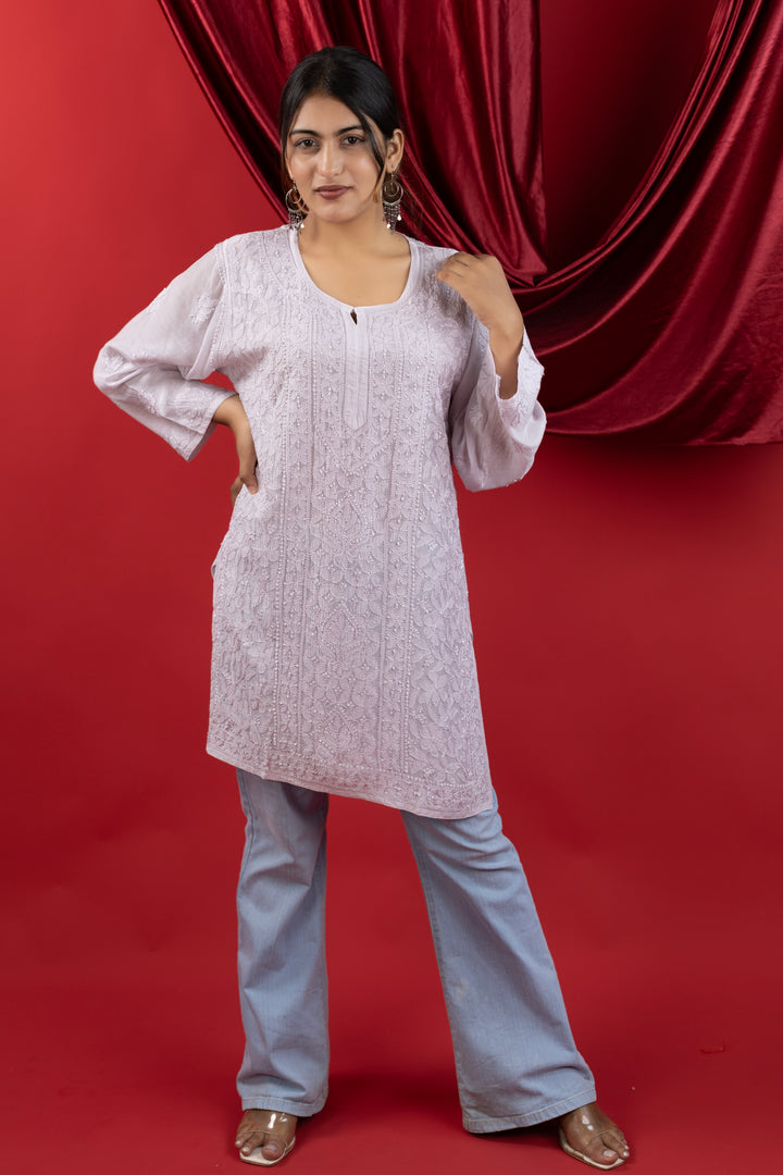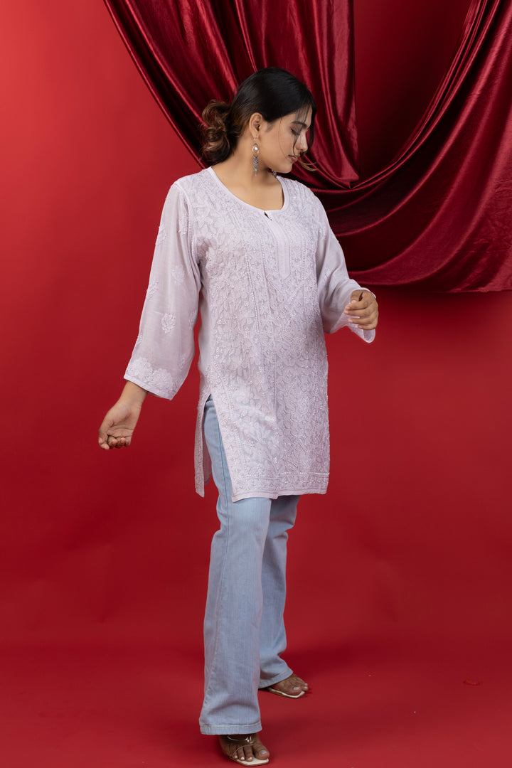 Lavender Muslin Short Kurti with Handcrafted Chikankari Jaal Embroidery
