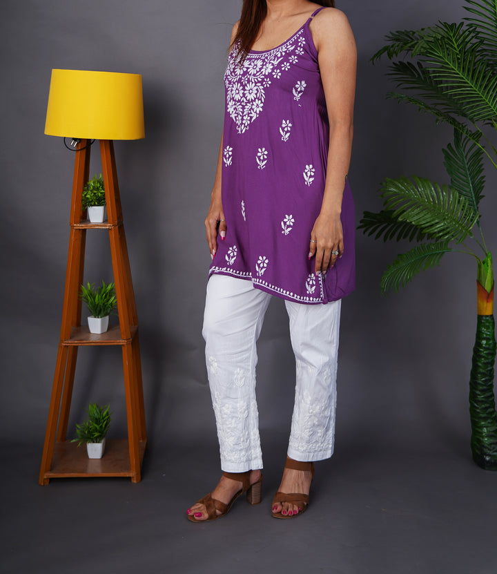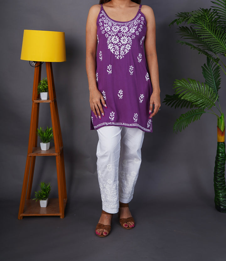 Vibrant Purple Chikankari Spaghetti Top – Rayon Magic for Every Mood