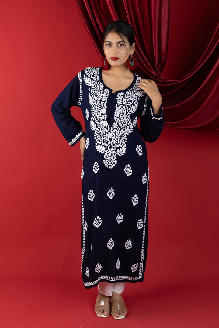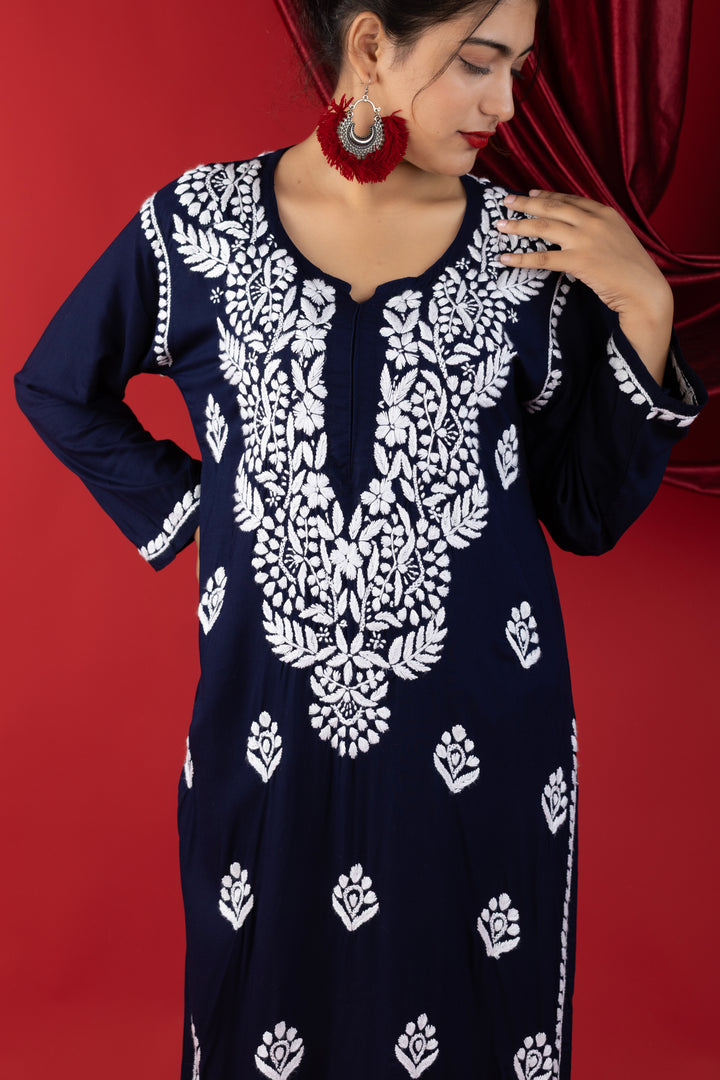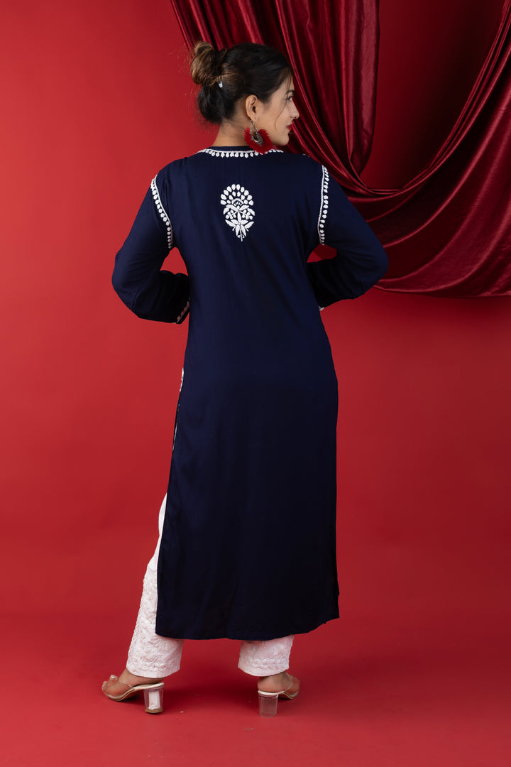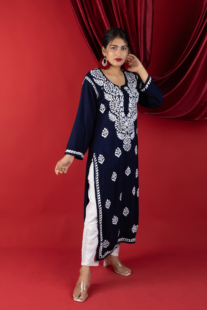 Navy Blue Handcrafted Chikankari Rayon Kurta