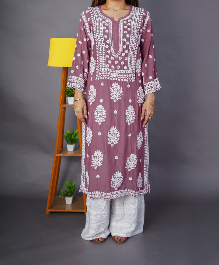 Dusty Mauve Delight Premium Muslin Handwork Chikankari Kurti